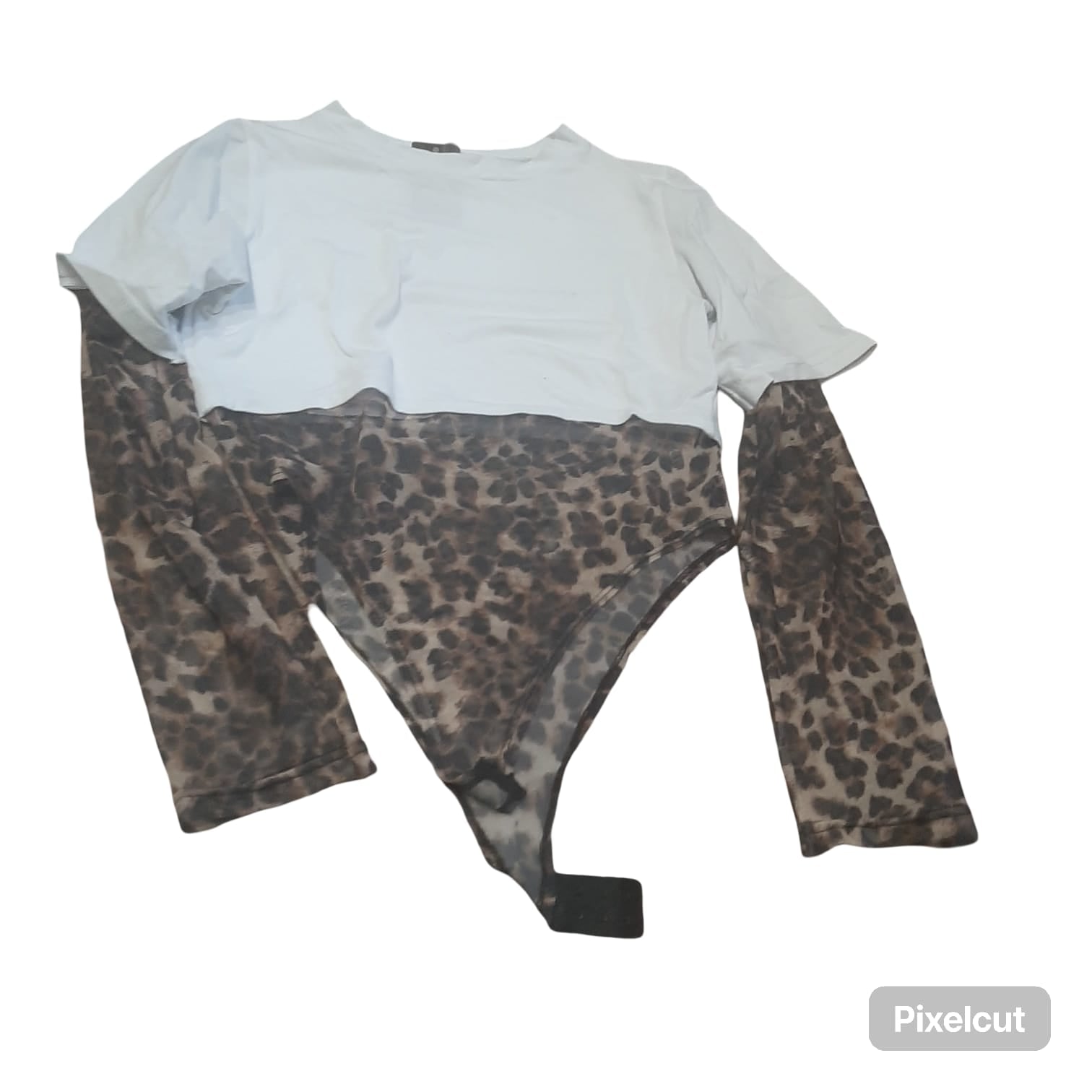 Body dal design elegante e sensuale, caratterizzato da maniche con stampa animalier che donano un tocco grintoso e moderno.