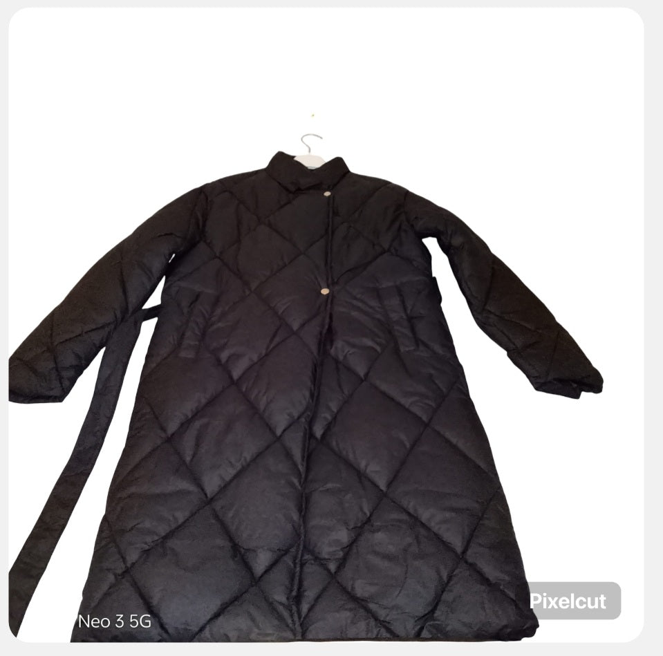 Giubbino lungo rombi dal taglio moderno e funzionale, pensato per garantire comfort e protezione durante le stagioni più fresche.