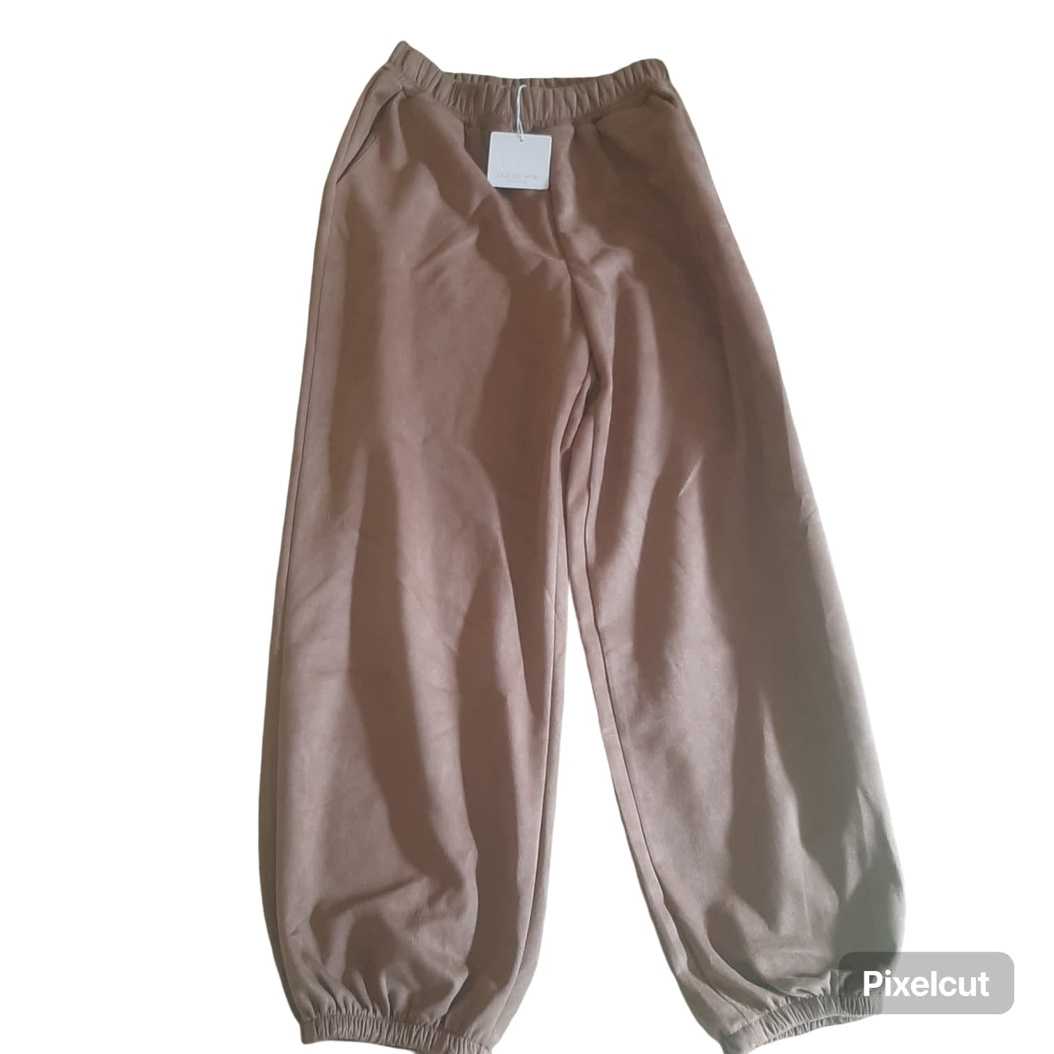 Pantalone dal design moderno e confortevole, caratterizzato da vita elasticizzata e fondo con elastico alla caviglia.