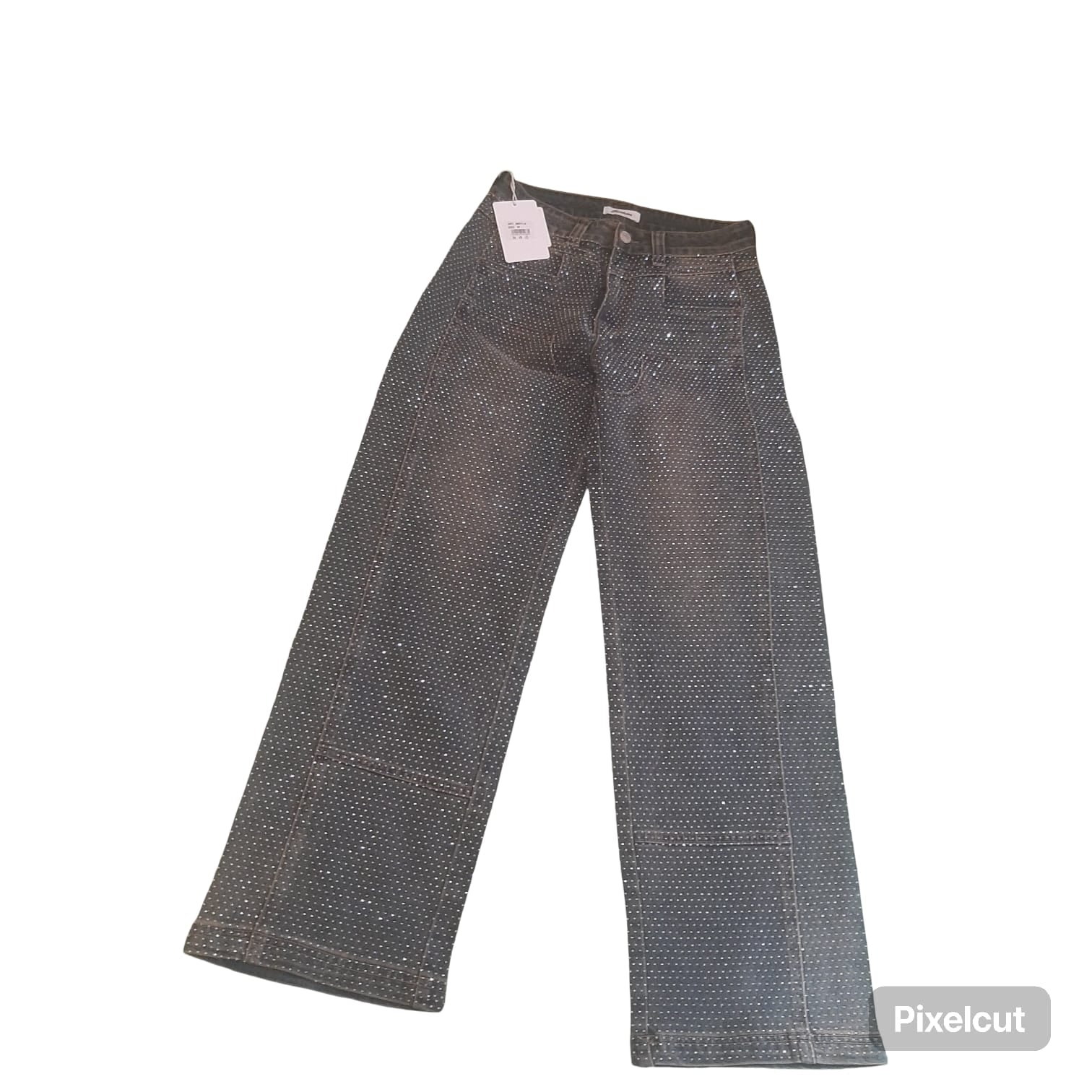 Questi pantaloni catturano lo sguardo con il loro tessuto luminoso e scintillante, impreziosito da brillantini ⁄ paillettes che riflettono la luce ad ogni movimento.
